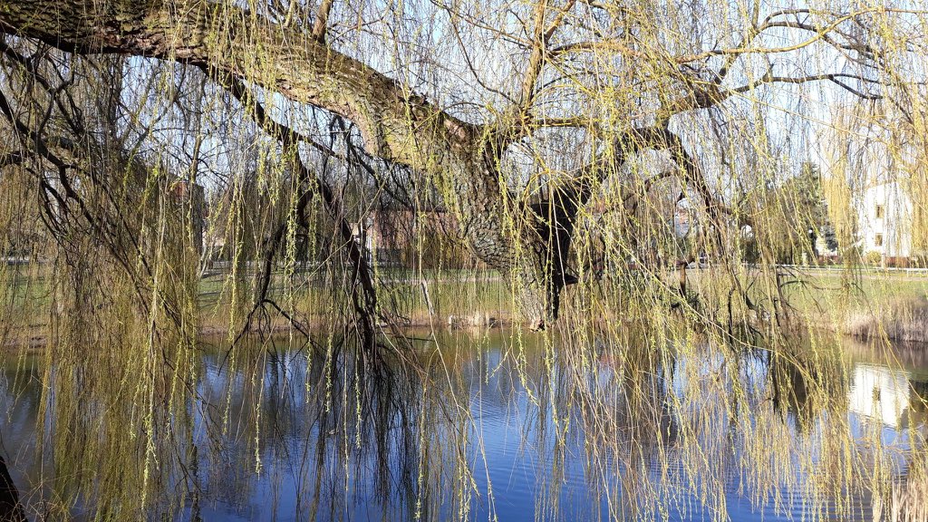 en el estanque, ramas.